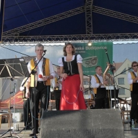 Blanka Tůmová und Radek Klusoň sangen sichtlich begeistert mit den Weinberg Musikanten. Aufmerksame Zuschauer erkannten sicher auch eine weitere Aushilfe - den Tenorhornspieler und musikalischen Leiter Michael Mareš von der Kapelle Libkovanka.